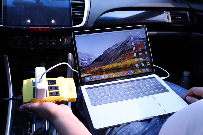 将笔记本电源适配器连接到BEPD150FCA车载逆变器上,笔记本已经开始正常充电,充电速度与室内普通电源插口提供的速度一致,用户在使用BEPD150FCA车载逆变器建议开启车辆,如果车辆熄火后持续给其他便携式电器进行充电,那么会导致车辆电瓶电量不足,所以汽车熄火后建议将其他设备从车载逆变器拔下。