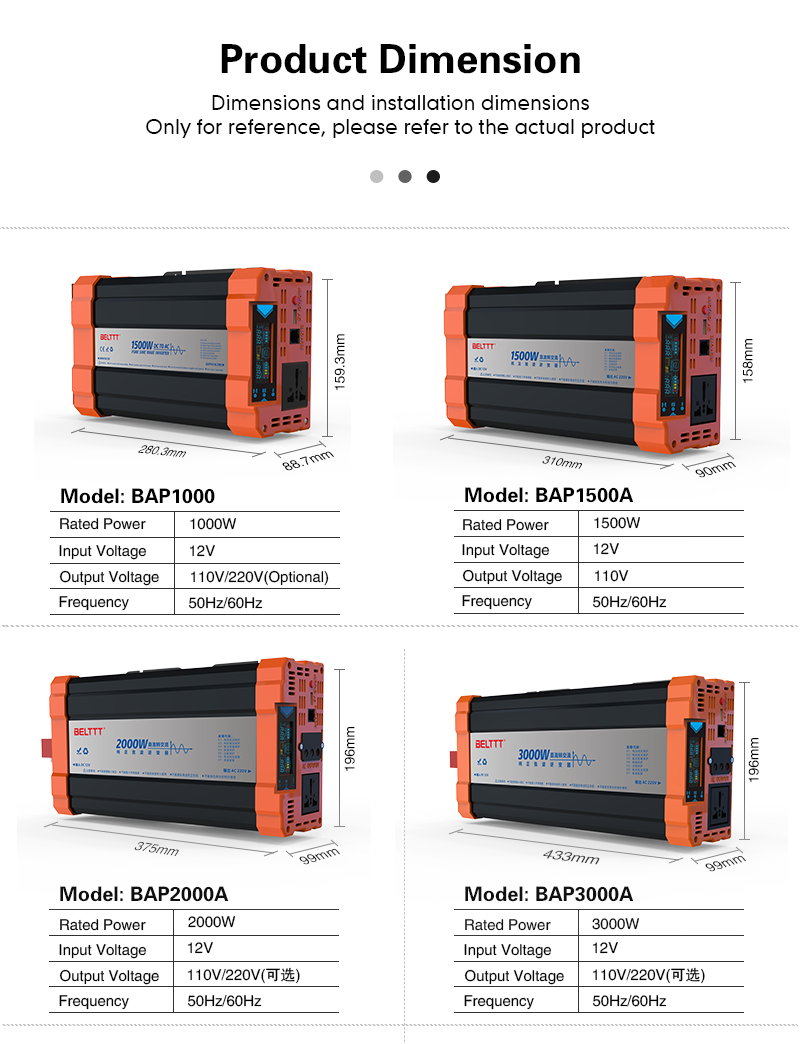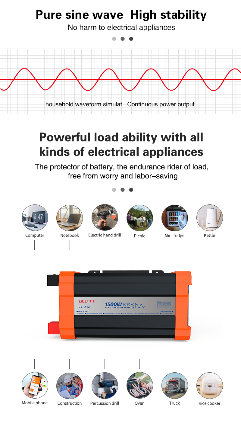 1500W Inversor de onda senoidal pura BAP1500 El producto tiene las siguientes características: