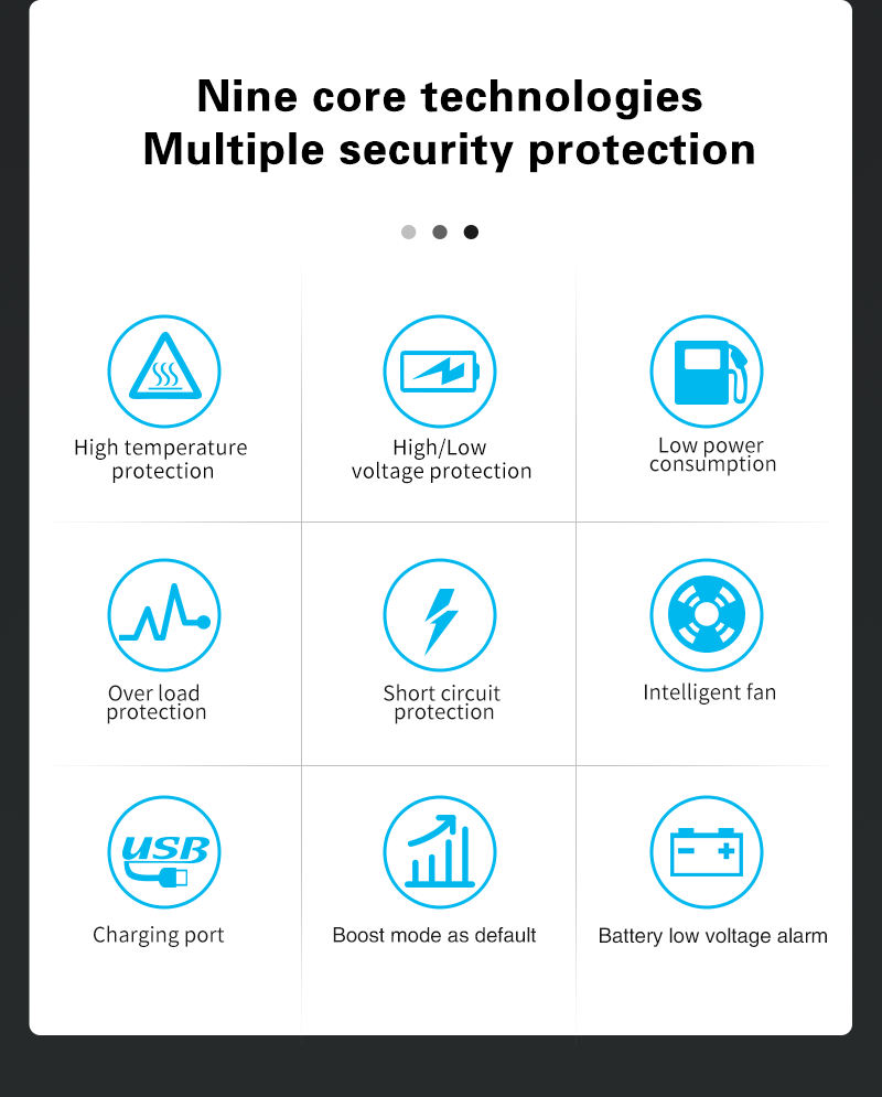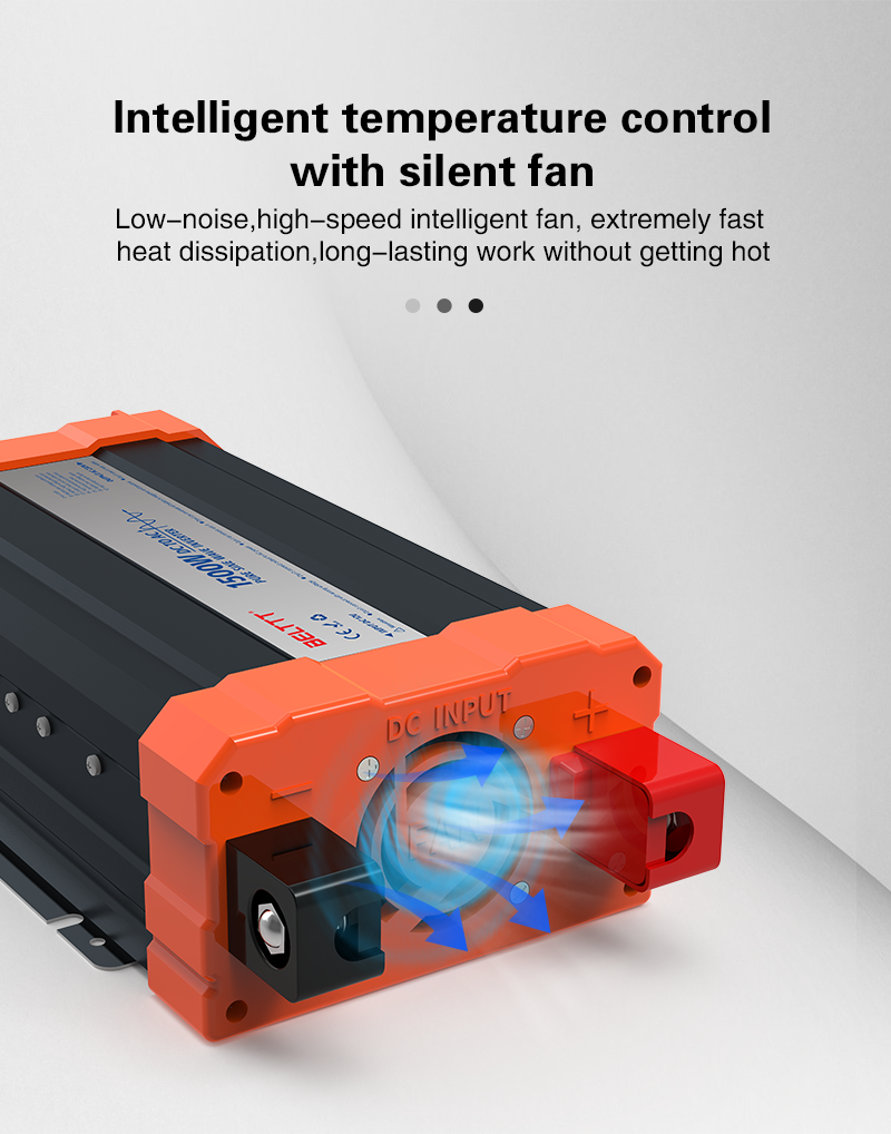 6. el ventilador adopta un doble control de temperatura y potencia para garantizar que la carga de baja potencia sea silenciosa mientras el producto se utiliza normalmente;