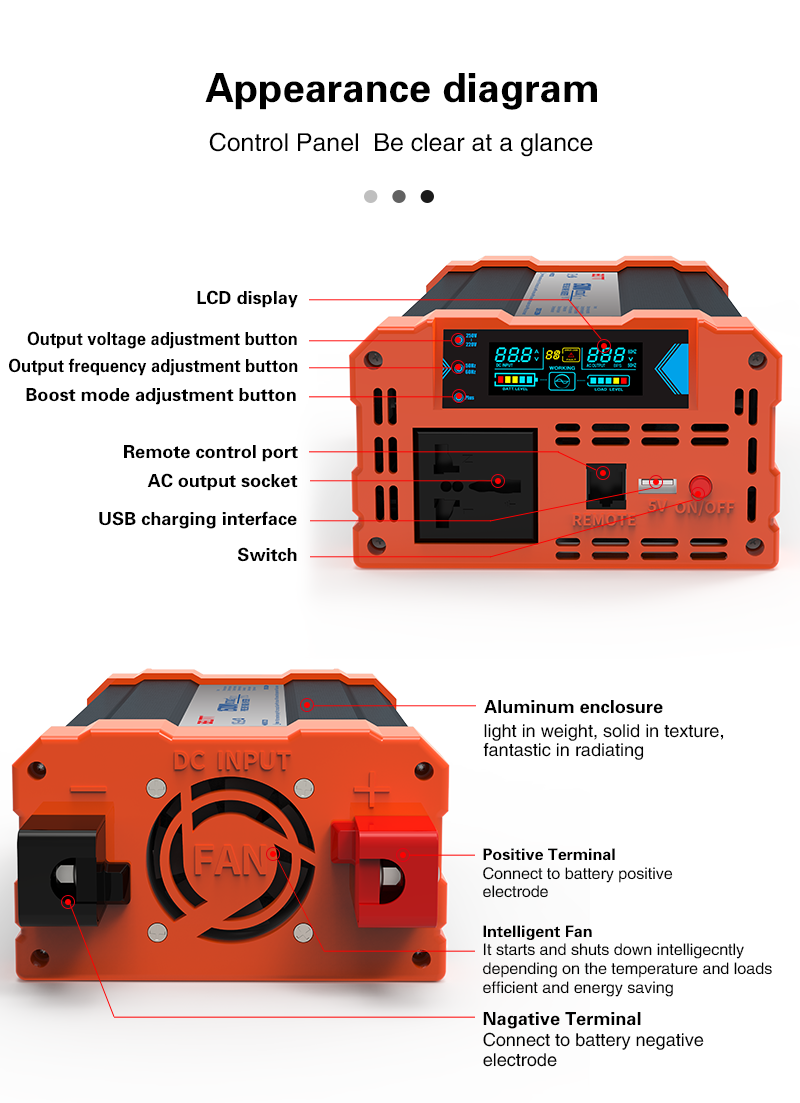 4. el voltaje de salida y la frecuencia de salida se pueden configurar por sí mismos para satisfacer diferentes necesidades;