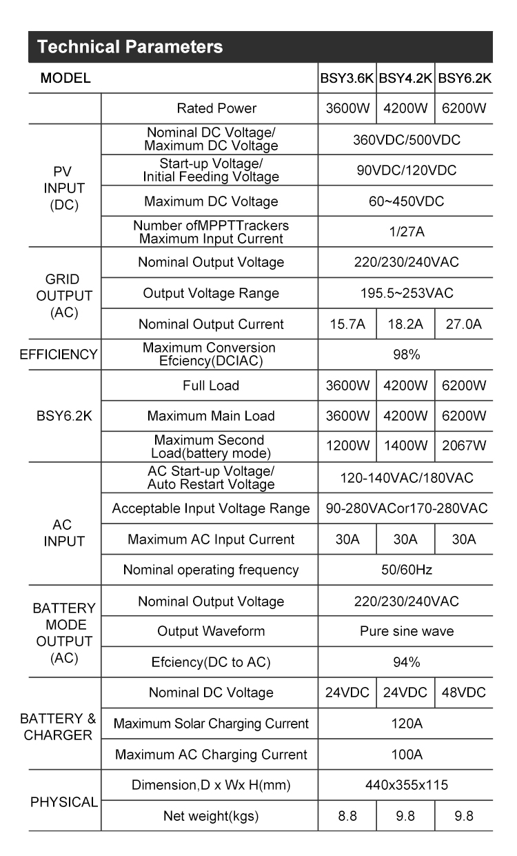 BSY Inversor solar híbrido 4,2~6,2k